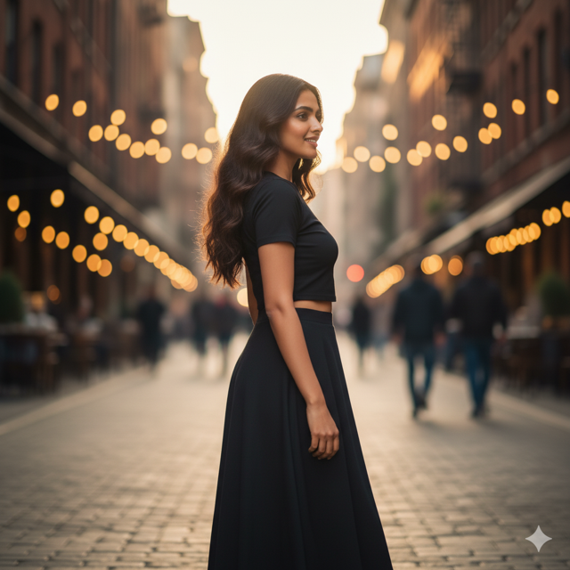 Cotton-poly (200 GSM), crop top, matching midi skirt. Made in India.