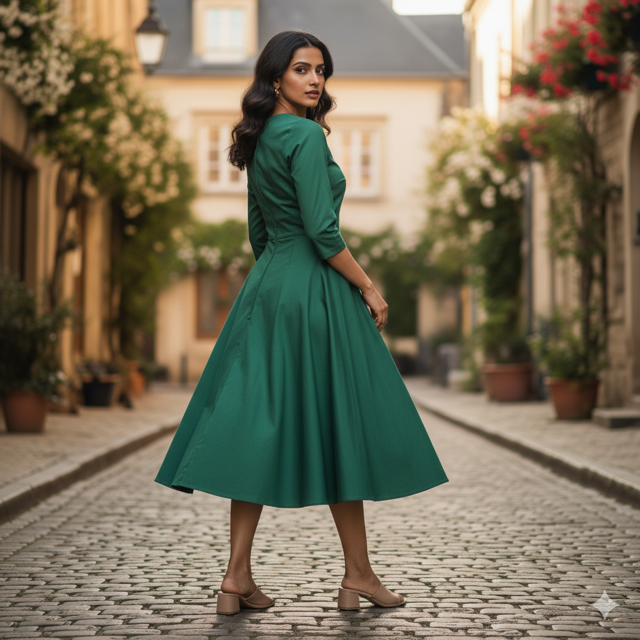 Green A-Line Cotton DressGreen A-Line Cotton Dress