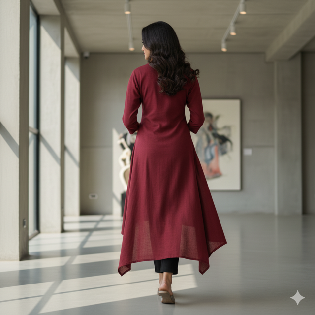 Cotton blend (180 GSM), high-low hem cut, modern style. Made in India.
