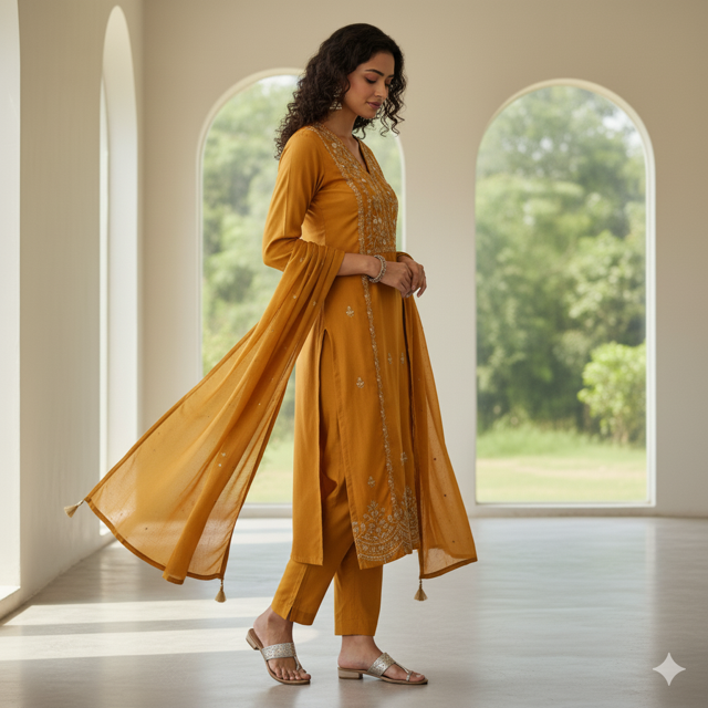 Saffron Silk Suit SetSaffron Silk Suit Set